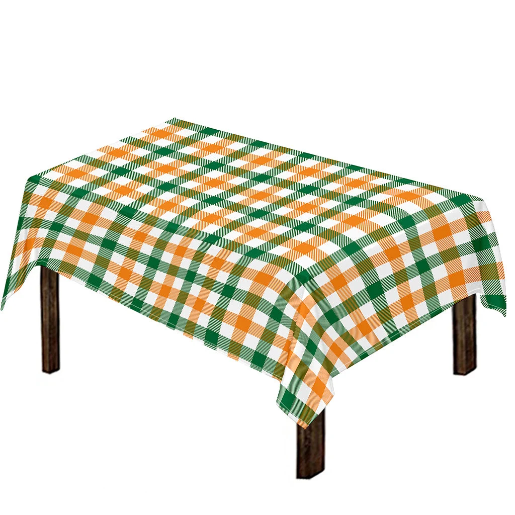 White Orange And Green Plaid Print Tablecloth Kitchen Decor Home Decor