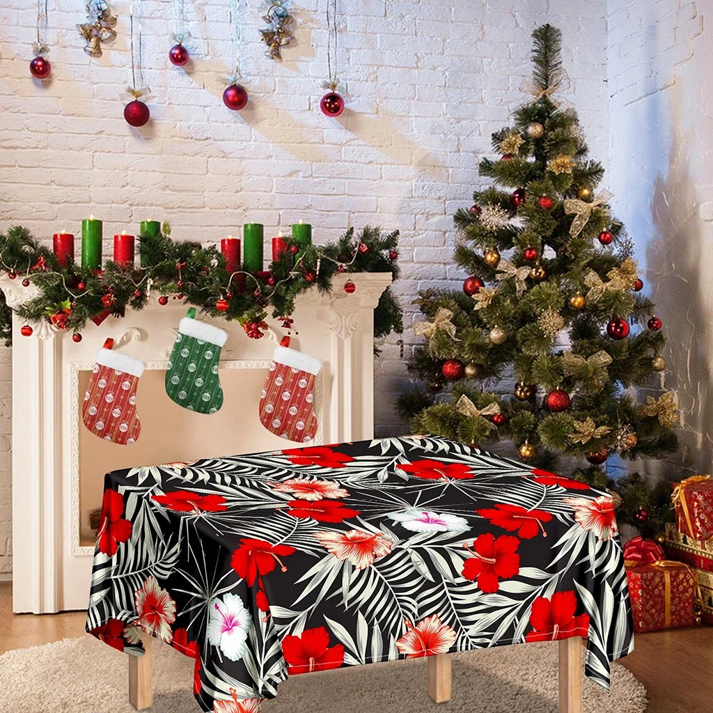 White Tropical Hibiscus Pattern Print Tablecloth Kitchen Decor Home Decor