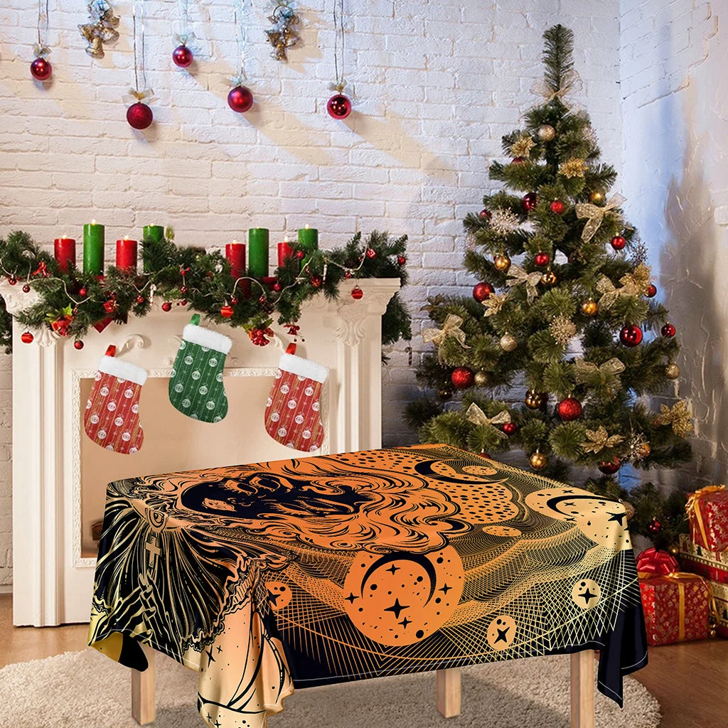 Wiccan Girl And Magical Moon Print Tablecloth Kitchen Decor Home Decor