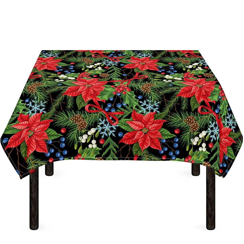 Xmas Poinsettia Pattern Print Tablecloth Kitchen Decor Home Decor