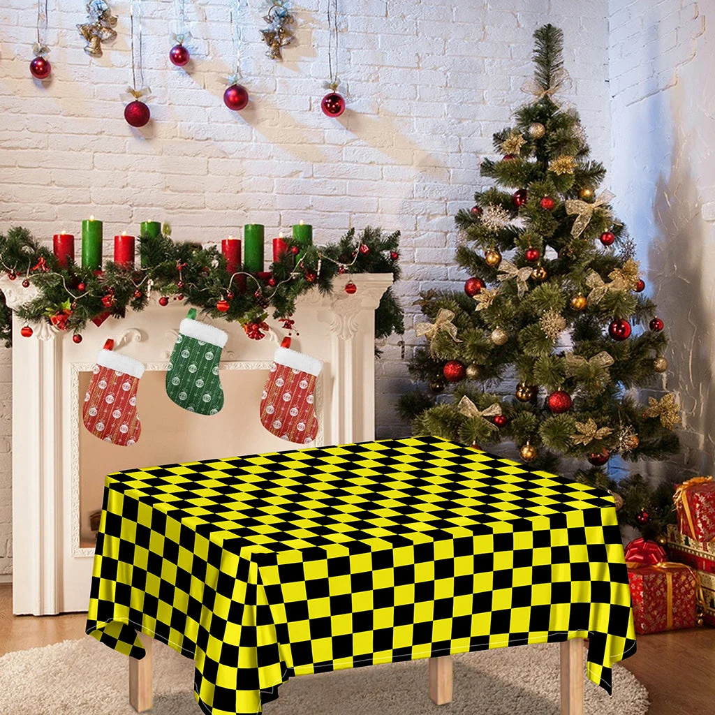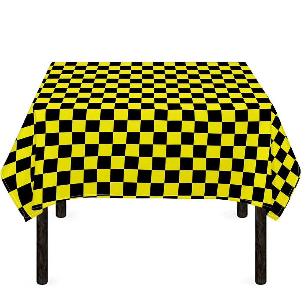 Yellow And Black Checkered Pattern Print Tablecloth Kitchen Decor Home Decor