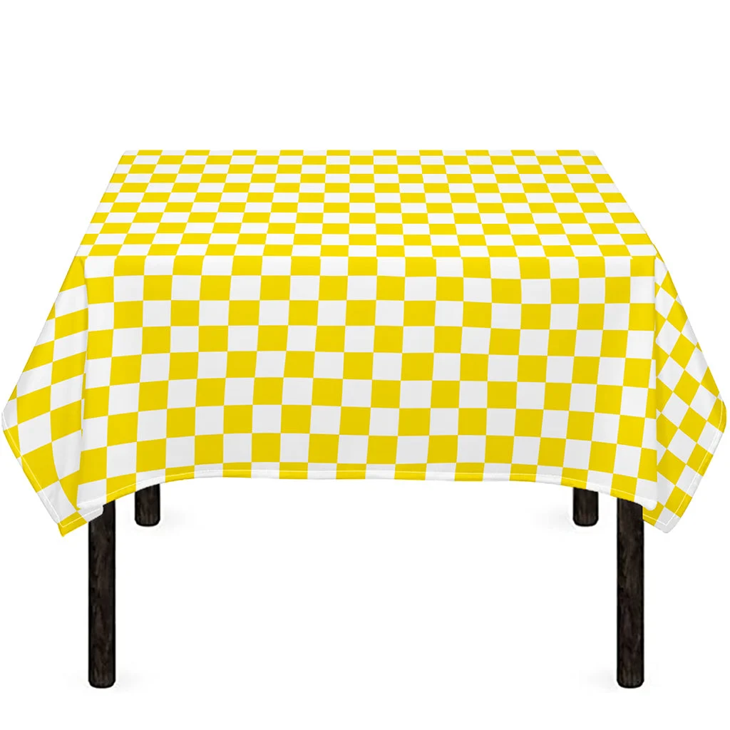 Yellow And White Checkered Pattern Print Tablecloth Kitchen Decor Home Decor