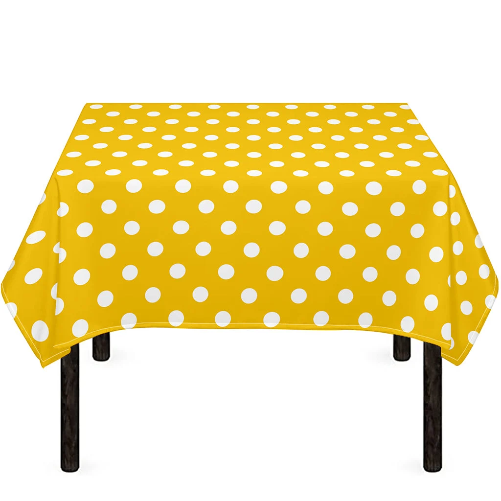 Yellow And White Polka Dot Pattern Print Tablecloth Kitchen Decor Home Decor
