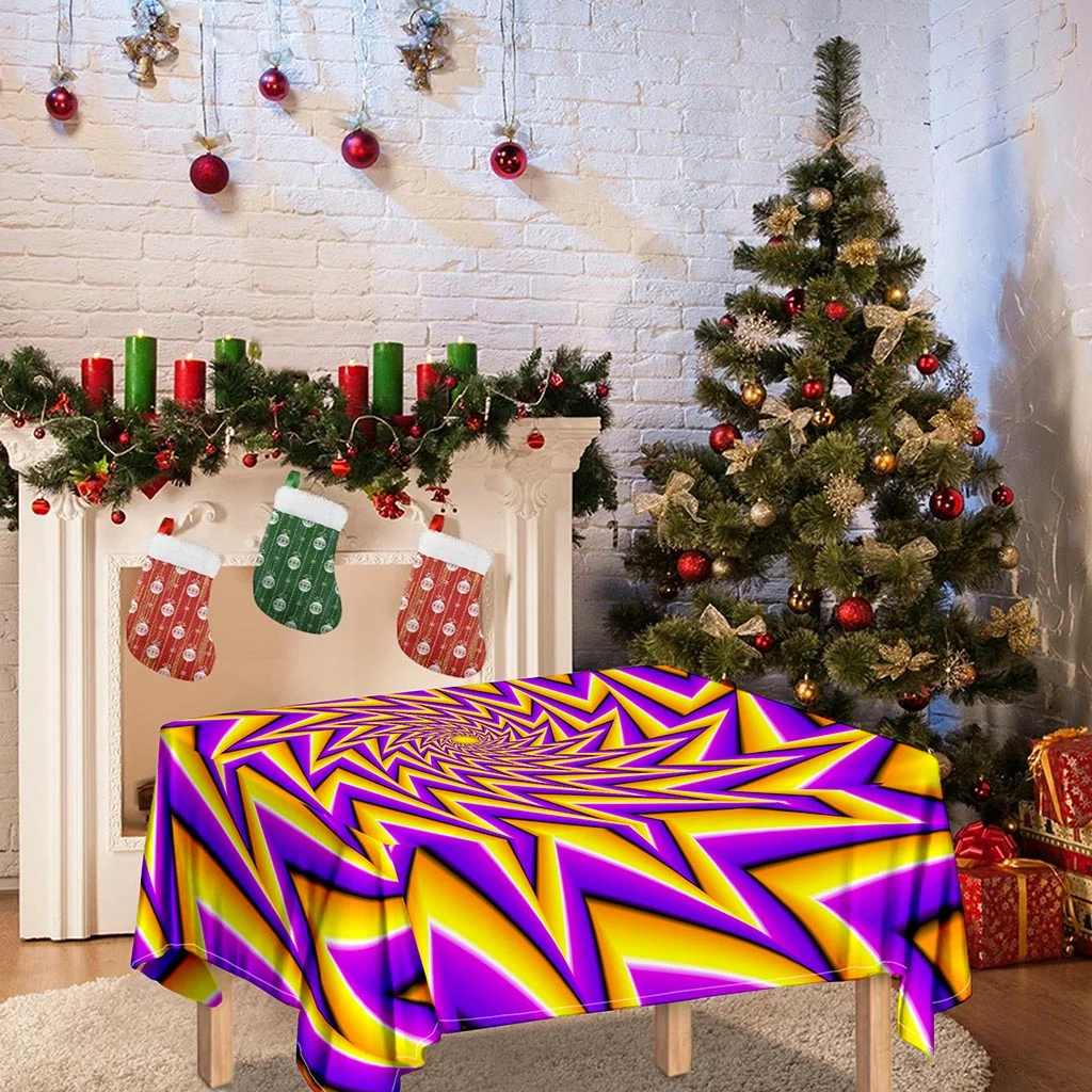 Yellow Big Bang Moving Optical Illusion Tablecloth Kitchen Decor Home Decor