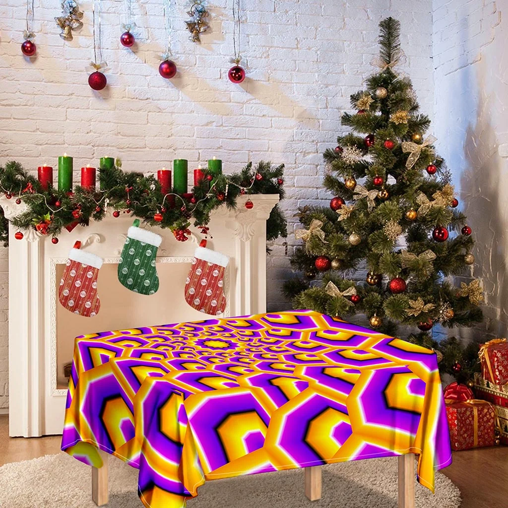 Yellow Hive Moving Optical Illusion Tablecloth Kitchen Decor Home Decor