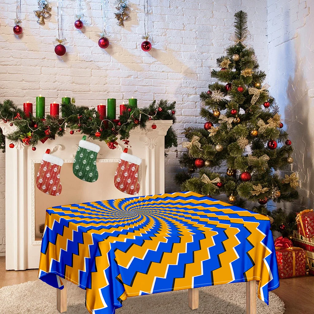 Yellow Spiral Moving Optical Illusion Tablecloth Kitchen Decor Home Decor