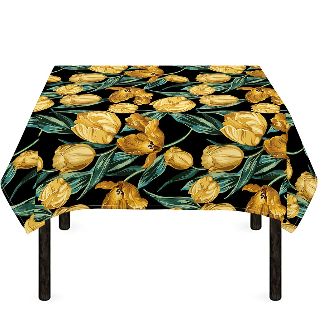 Yellow Tulip Floral Pattern Print Tablecloth Kitchen Decor Home Decor