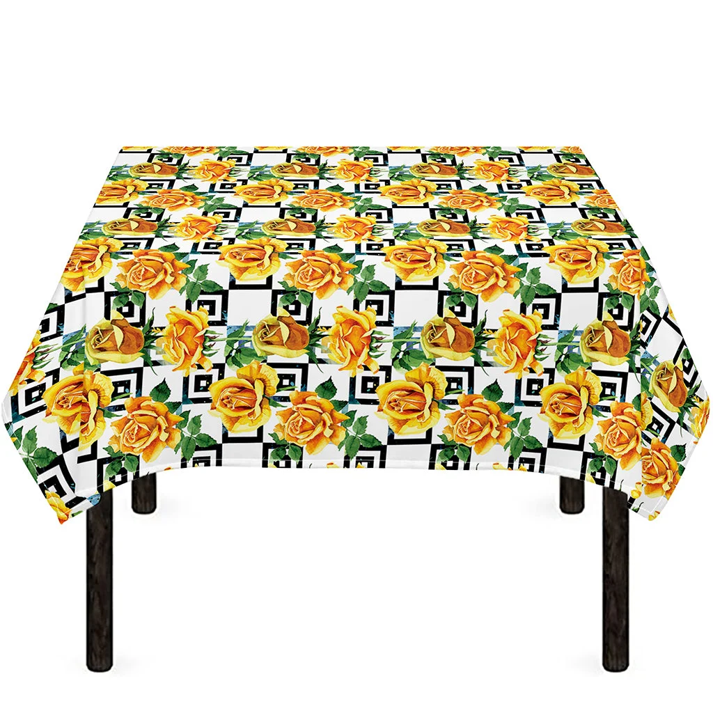 Yellow Watercolor Rose Print Tablecloth Kitchen Decor Home Decor